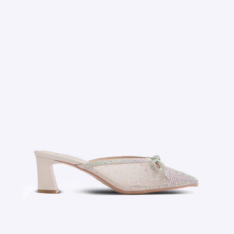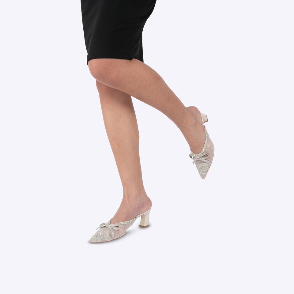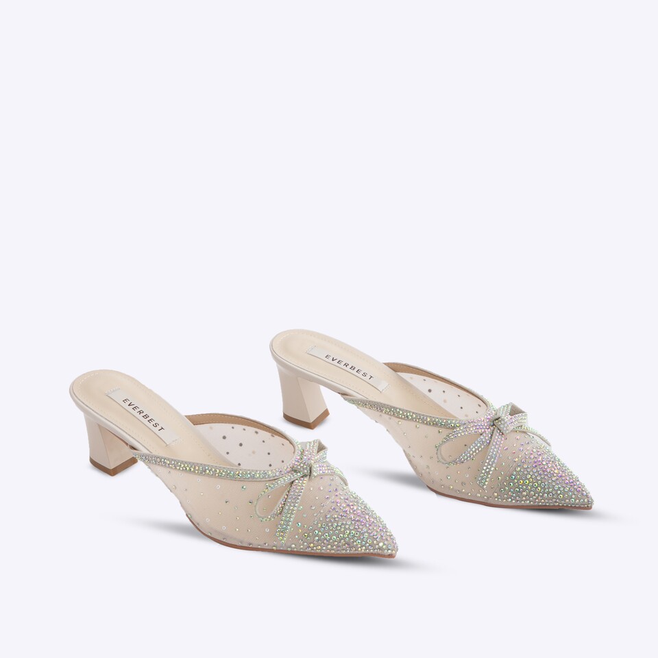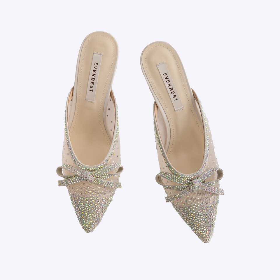 Time to refresh your evening style with CANERY at your feet. Boasting hotfix crystals, these mules are perfect for a night out at a party or for evening style. Three color variants are available for you to choose: black, beige, and champagne. Get ready to dance the night away in a dazzling style with CANERY.