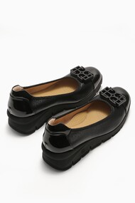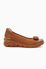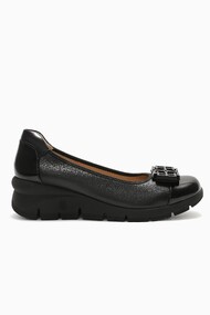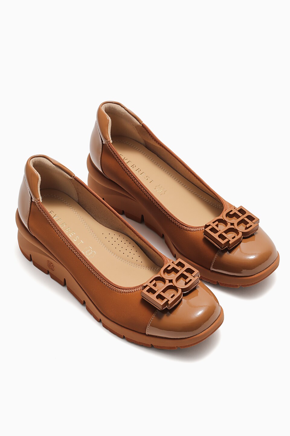 Elevate your footwear collection with the classic Everbest Horse Buckle Wedge Pump, a stunning leather shoe designed for both style and comfort. Featuring a chic bow on the heel and an elegant EB Horse Shoe Buckle, this pump exudes luxury while making a fashion statement. The upgraded insole with arch support and extra padding ensures all-day comfort, making it the perfect choice for your daily activities. Step out in confidence and sophistication with this versatile addition to your wardrobe.