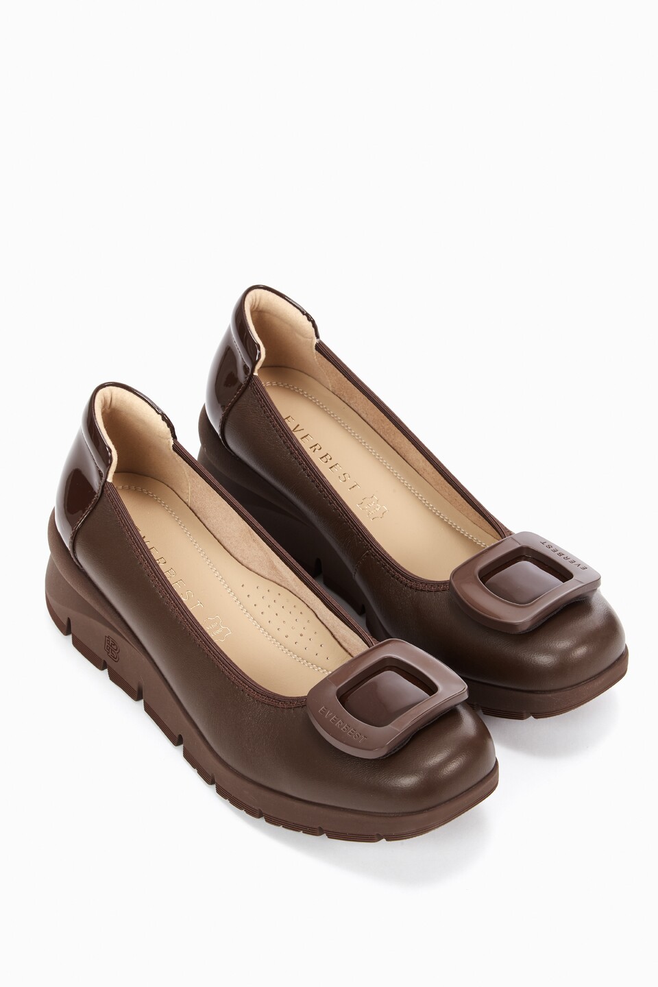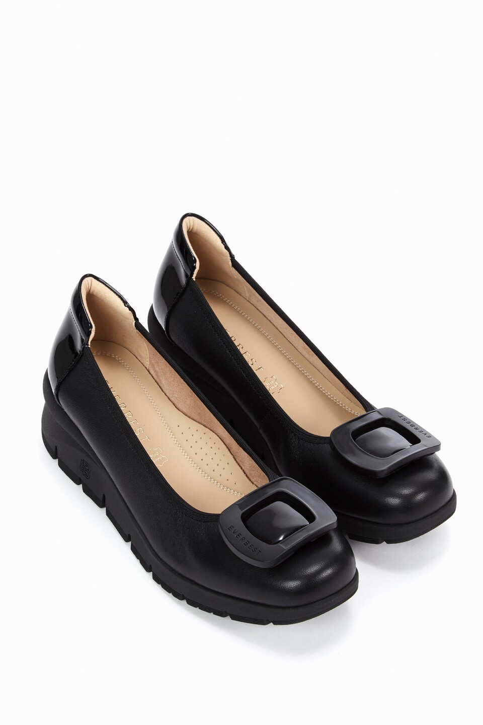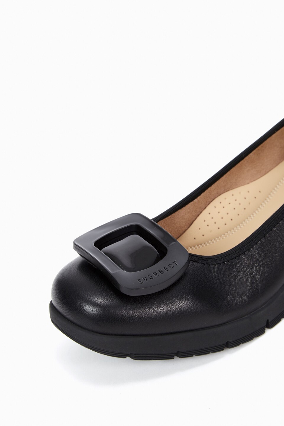 Elevate your footwear collection with the classic Everbest buckle, a stunning leather shoe designed for both style and comfort. Featuring a bulky wedge heel and soft padding. This pump exudes luxury while making a fashion statement. The upgraded insole with arch support and extra padding ensures all-day comfort, making it the perfect choice for your daily activities. Step out in confidence and sophistication with this versatile addition to your wardrobe.