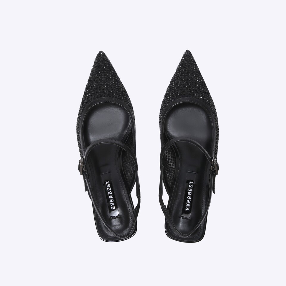 Prepare yourself to look stand-out with ONNI. Best-selling heels that feature Mary Jane band, hotfixed geometrical crystals on the upper, and slingback band detail. Sophistication!