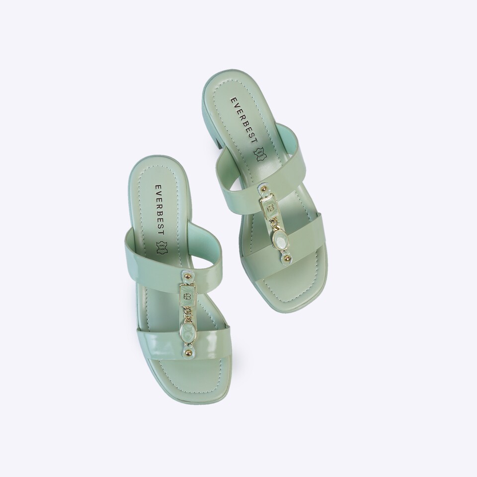 Complete your feminine look with SHELYN. A heel sandal that is adorned with gems and a lightweight sole.