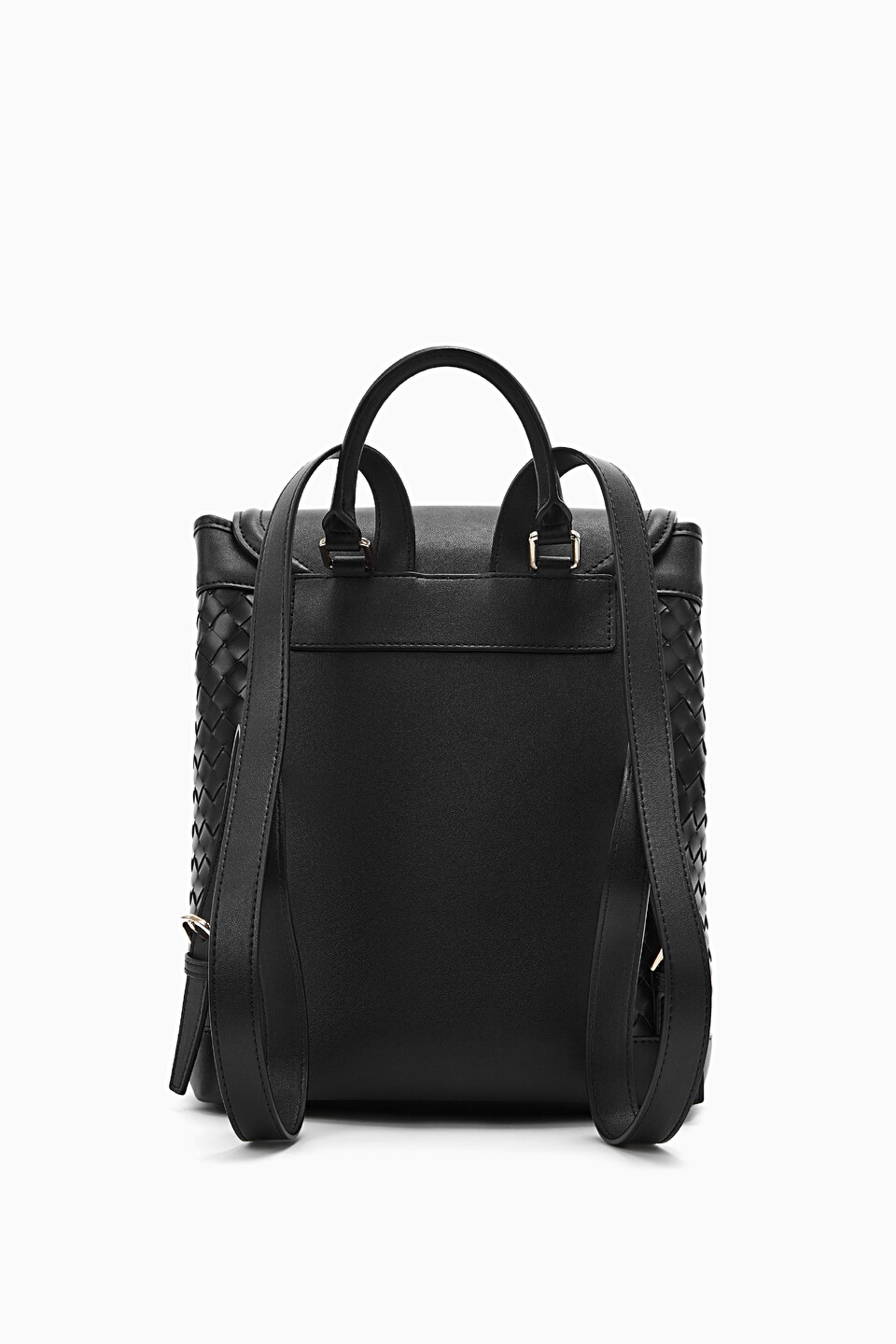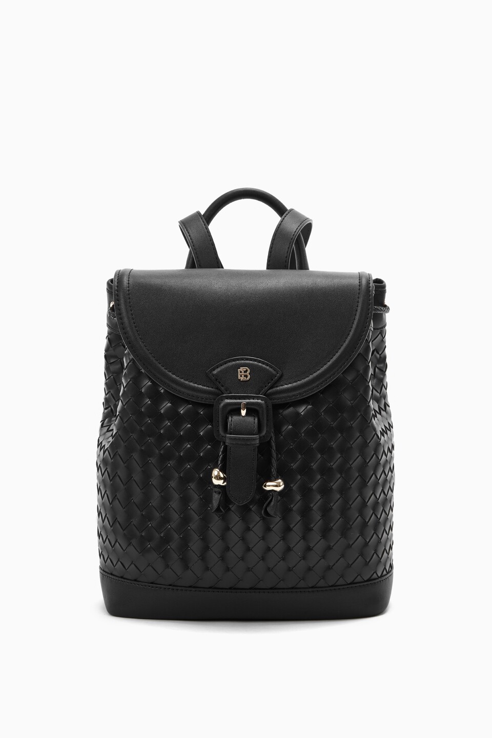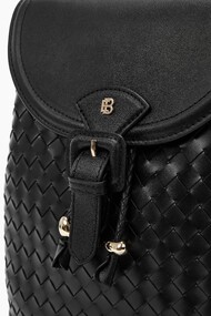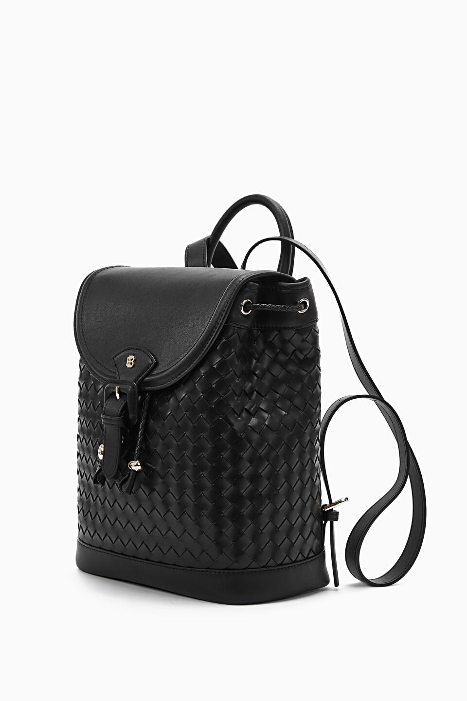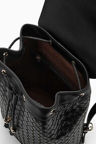 Introducing the TARU backpack—a statement of modern sophistication in black. Crafted from luxurious handcrafted-woven leather, its refined drawstring and metallic hardware details create a polished yet functional design made to elevate any look. TARU combines functionality with high fashion, making it an essential accessory for any wardrobe.