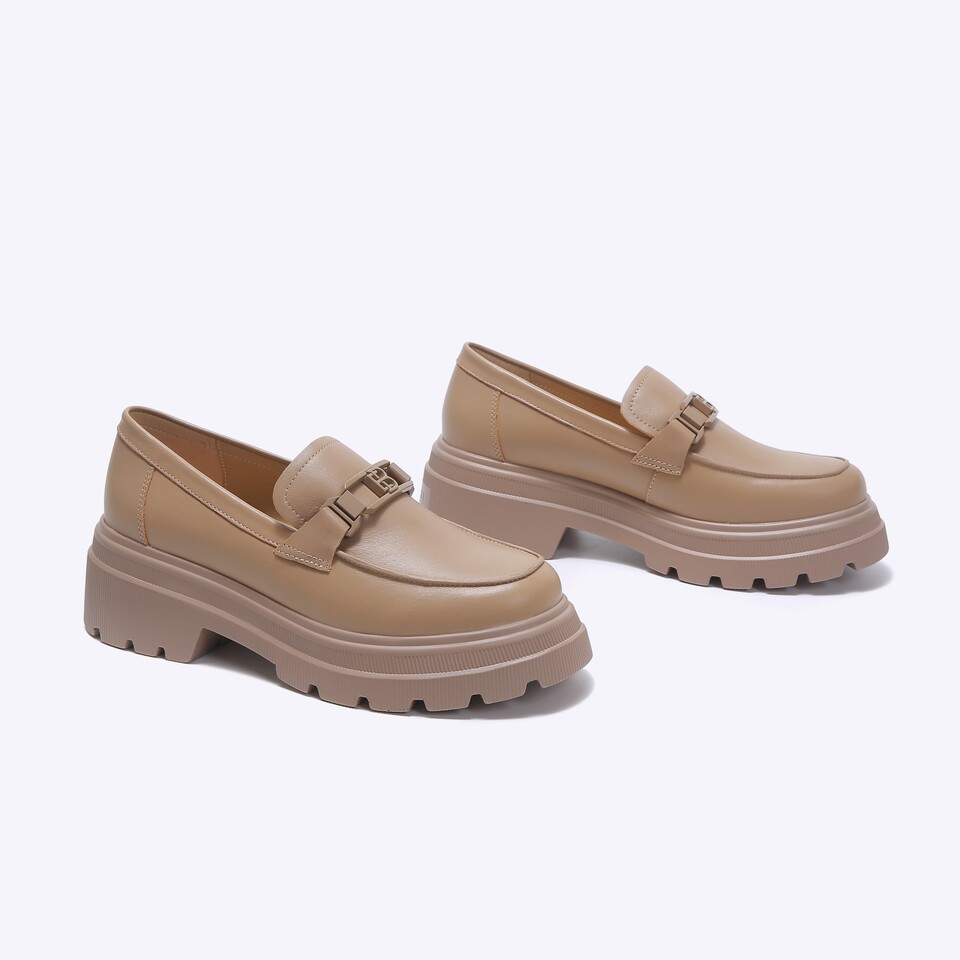 VERIKA is a woman's well crafted leather shoes with metallic buckle on top of the shoe tongues. Featuring a ridged and chunky soles, these shoes are suitable for office look or edgy fashion. It will give you a posh look and you will be comfortable wearing it all day long with their soft insoles!